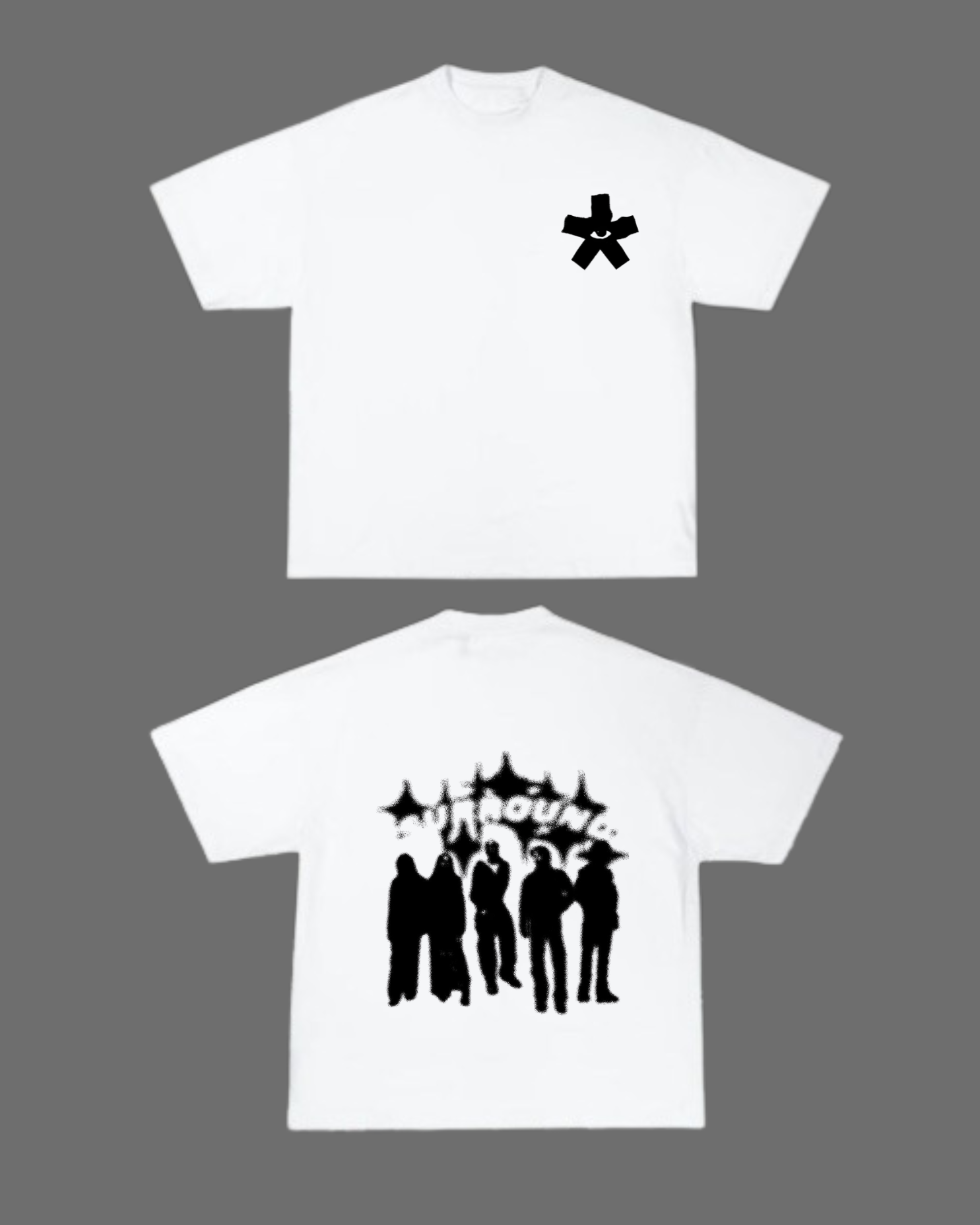 Make noise without saying a word. This heavyweight white tee features a minimalist front chest print — a bold mark that speaks volumes — and an eye-catching full-back graphic of distorted silhouettes under the word SURROUND in chaotic, spray-inspired typography. Designed with a raw, underground edge, it captures the energy of late-night gigs, DIY culture, and rebellious expression.
